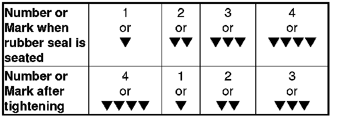- Tighten the filter by turning it clockwise three numbers or marks from the one you noted. For example, if mark �V is at the bottom when the seal is lightly seated, tighten the filter until the mark �V�V�V�V comes around to the bottom.