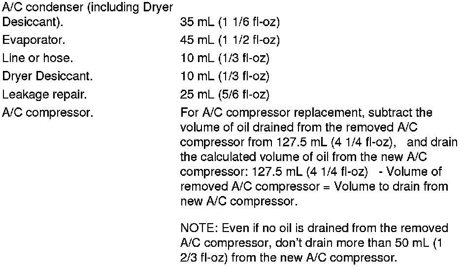 Add the recommended refrigerant oil in the amount listed if you replace any of the following parts: