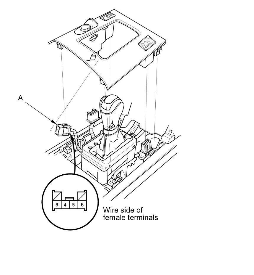 1. Remove the console panel Center Console Removal / Installation, and disconnect the 6P connector (C528) (A).