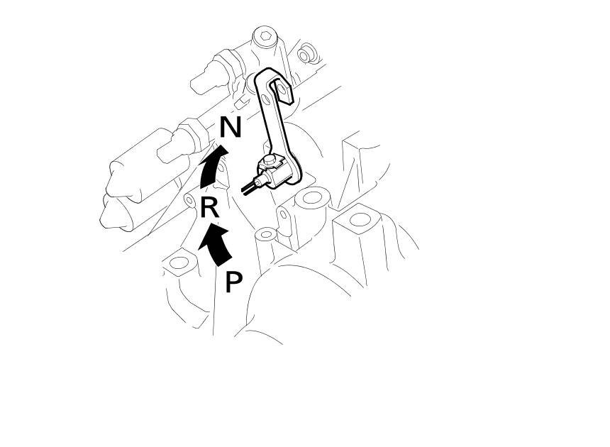 NOTE: Be sure to use a 2.0 mm (0.08 in) feeler gauge blade or equivalent to hold the transmission range switch in the N position.
