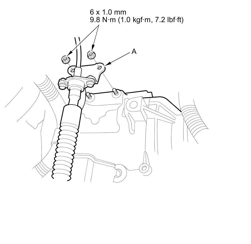 13. Install the shift cable bracket (A).