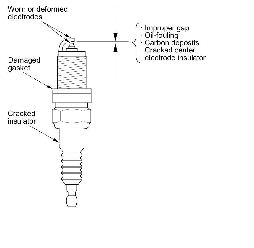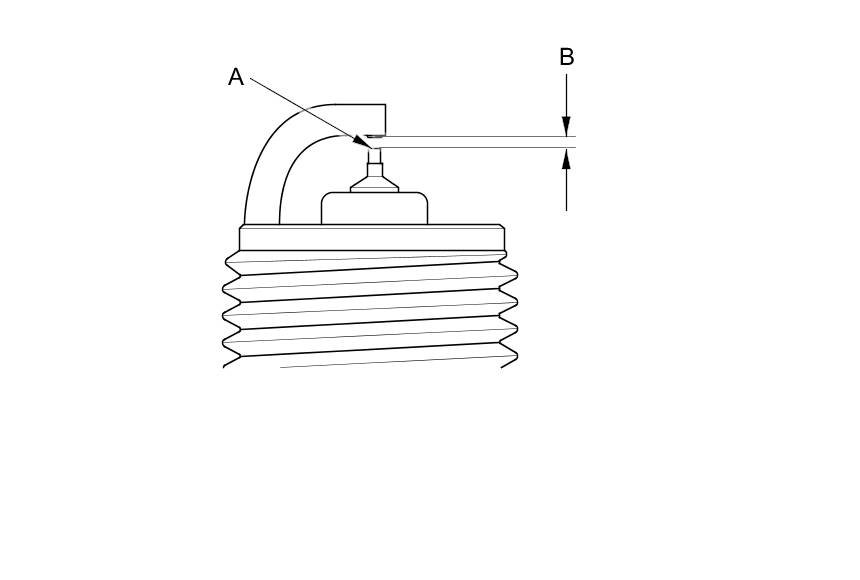 3. Replace the plug at the specified interval, or if the center electrode (A) is rounded, or if the spark plug gap (B) is out of specification, or if the spark plug electrode is dirty or contaminated. Use only the spark plugs listed.