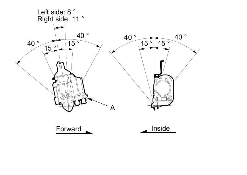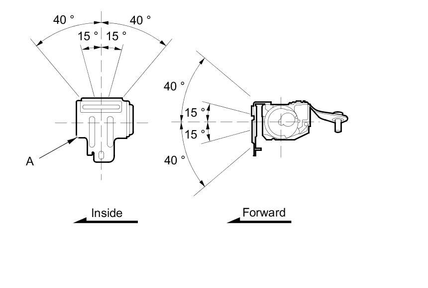 2. Make sure that the seat belt does not lock when the retractor (A) is leaned slowly up to 15 ° from the mounted position. The seat belt should lock when the retractor is leaned over 40 °. Do not attempt to disassemble the retractor.