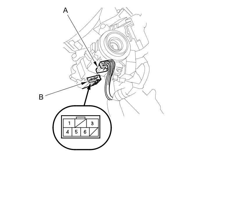3. Disconnect the 7P connector (A) from the ignition switch (B).