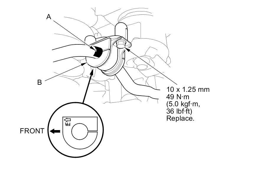 5. Install the stabilizer bar in the reverse order of removal, and note these items: