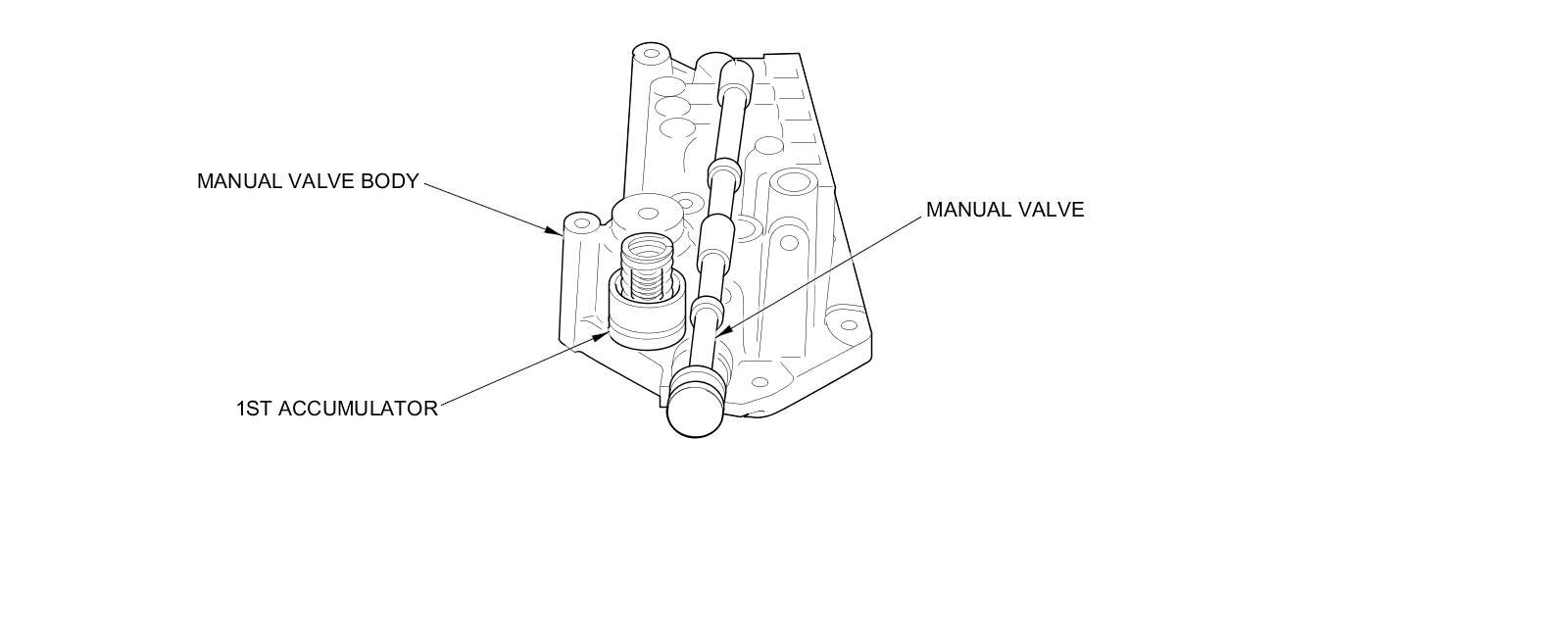 The manual valve body is located on the main valve body; it contains the 1st accumulator and the manual valve.