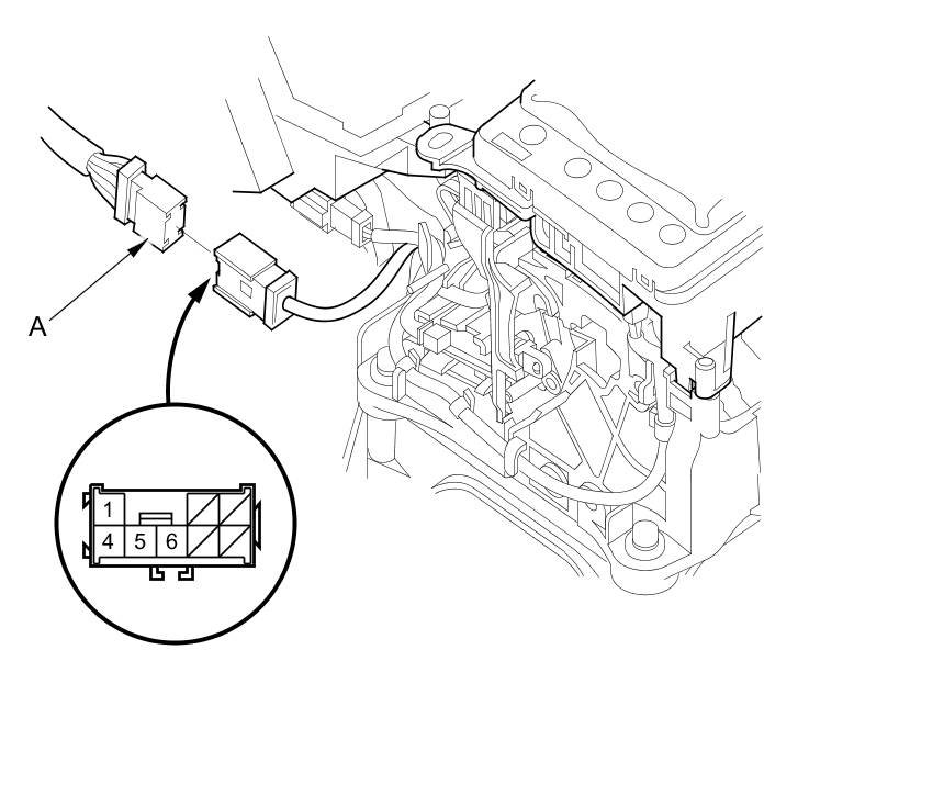 2. Disconnect the park pin switch/A/T gear position indicator panel light 8P connector (A).