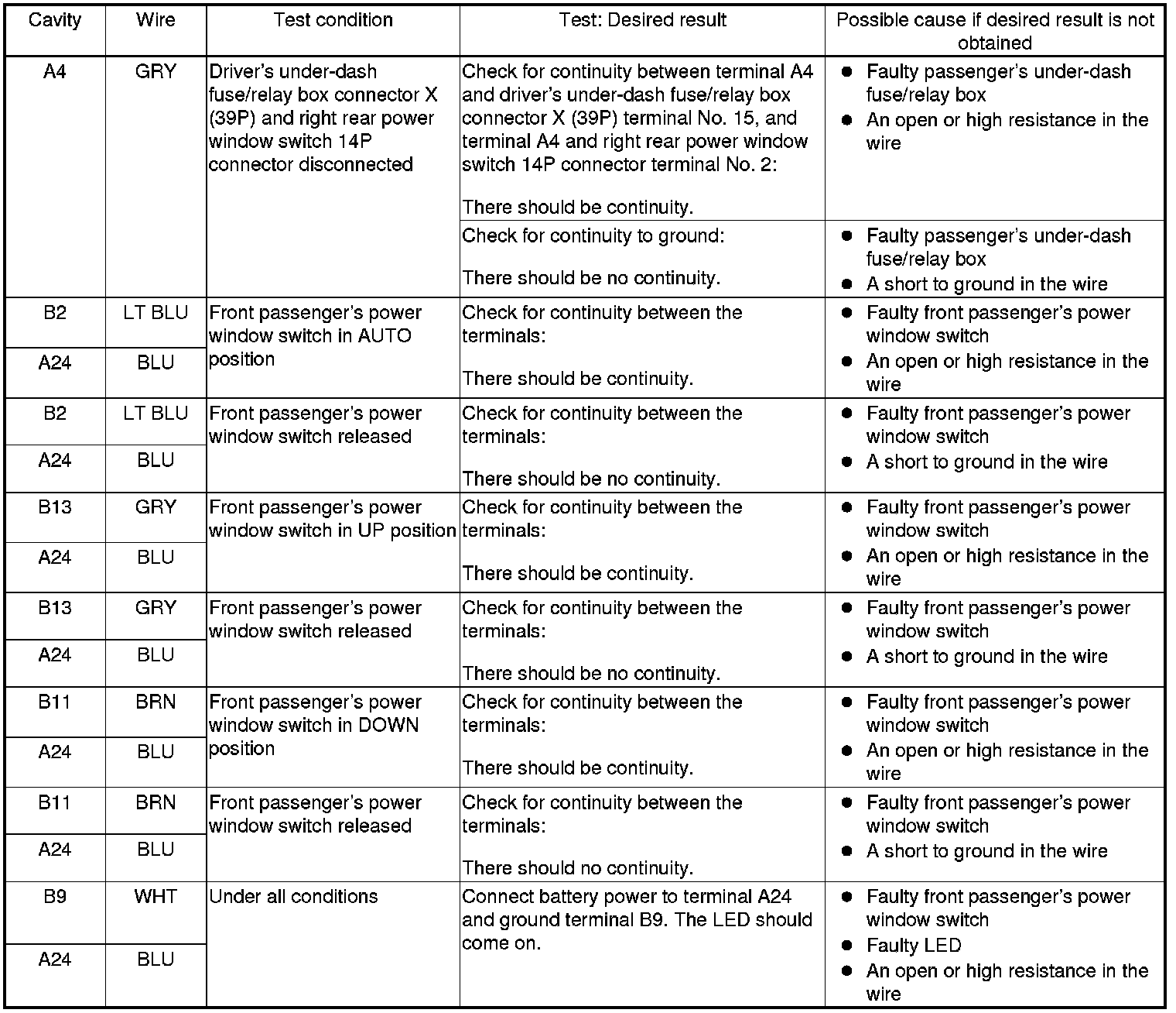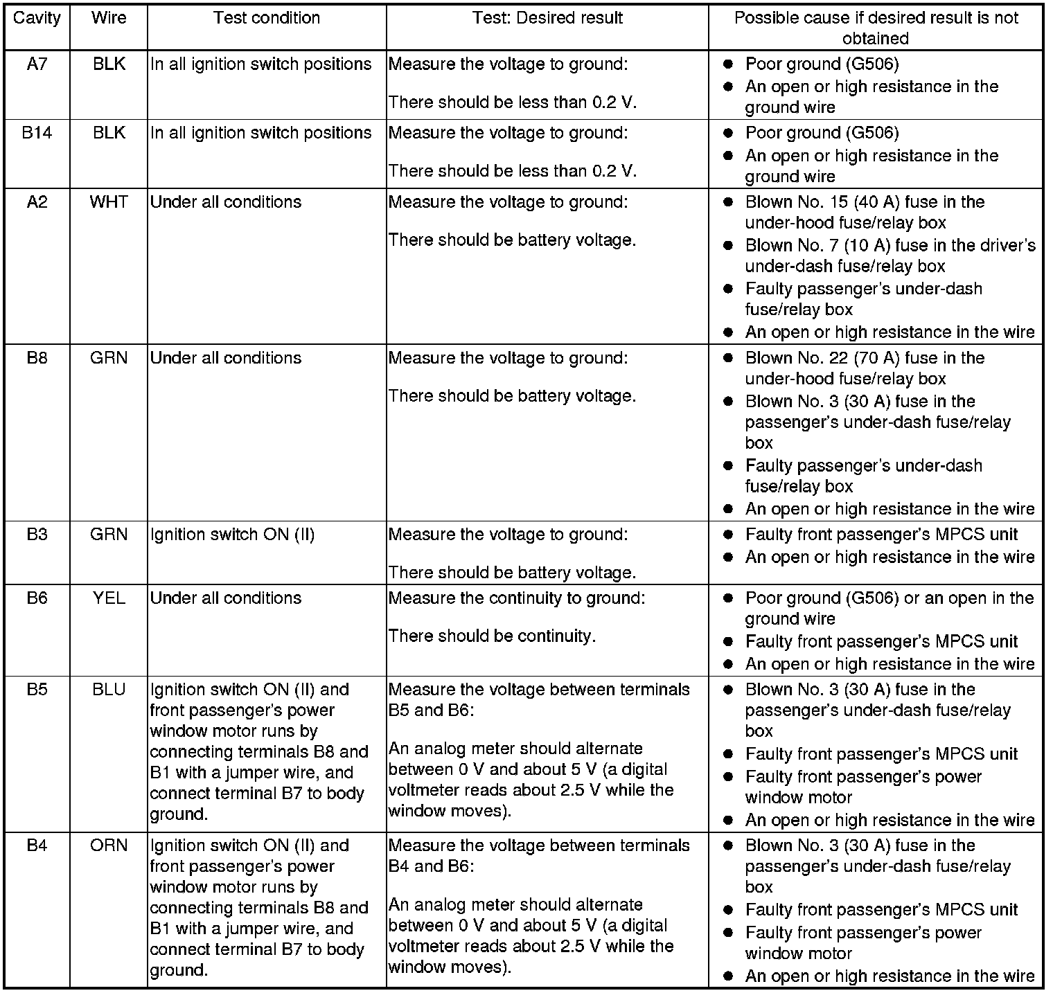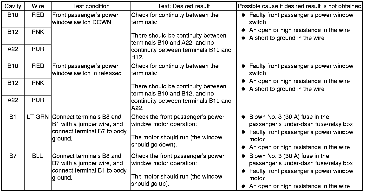 Power Windows (Front Passengers MPCS Unit) Input Test/Replacement