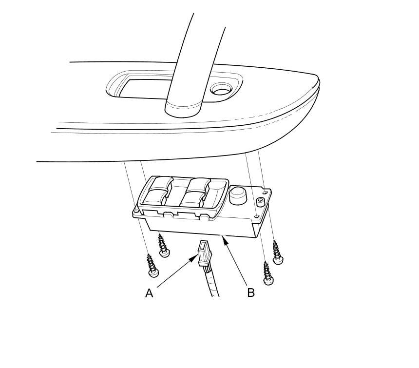 2. Disconnect the 6P connector (A) from the power window master switch (B).