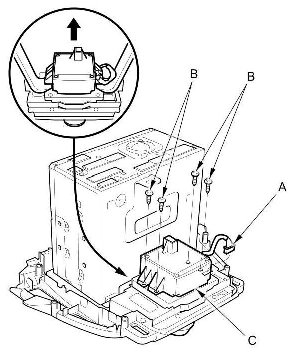 3. Remove the screw and the harness cover (C).