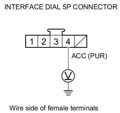 3. Measure the voltage between interface dial 5P connector terminal No. 4 and body ground.