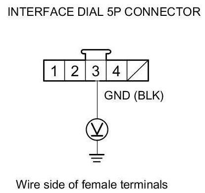 4. Measure the voltage between interface dial 5P connector terminal No. 3 and body ground.