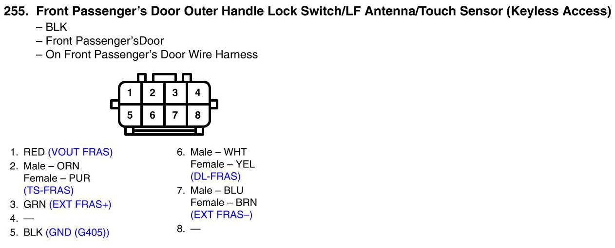Front Passenger's Door Outer Handle Lock Switch/LF Antenna/Touch Sensor (Keyless Access) Connector View