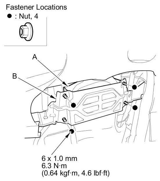 5. With seat ventilation: Remove the nuts, and release the front seat-back blower (A) from the seat frame (B).