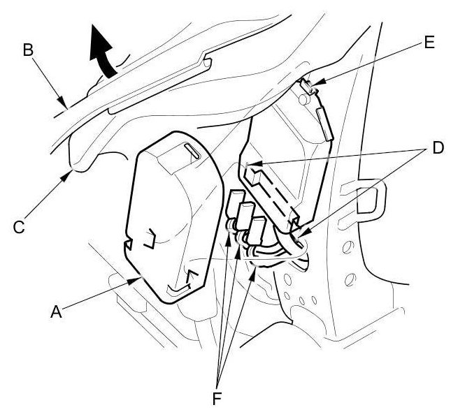 10. Passenger's seat: Disconnect the OPDS sensor connectors (F).