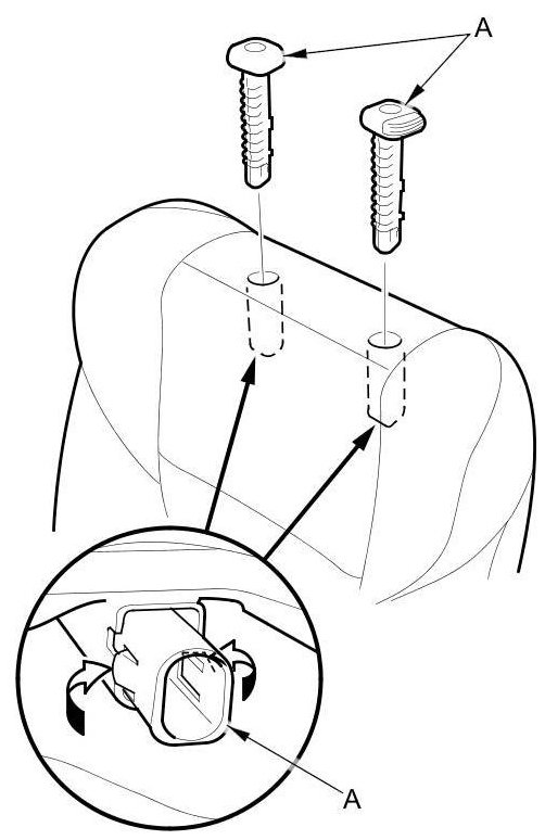 12. Pinch the tabs on the ends of the head restraint guides (A), and remove them from the seat-back.