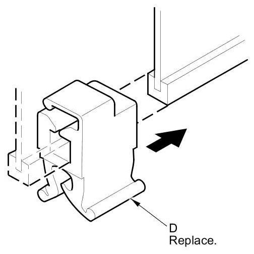 15. Remove airbag attachment wire B from the outside reinforcing cloth (C). Pull airbag attachment wire A out through the loop (D) of the inside reinforcing cloth (E). Remove airbag attachment wires A and B.