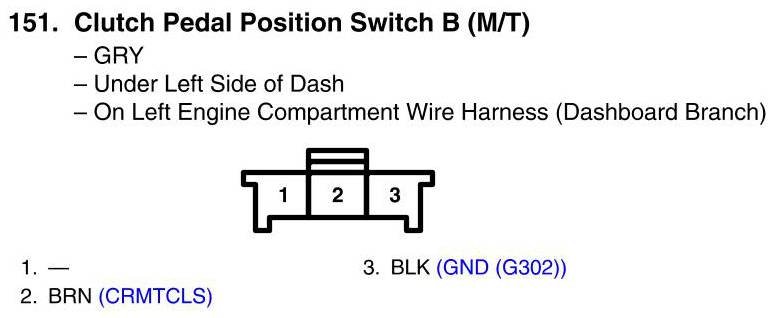 View 151 - Clutch Pedal Position Switch B (M/T) Connector View