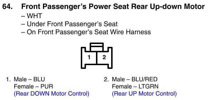 View 64 - Front Passenger's Power Seat Rear Up-Down Motor Connector View