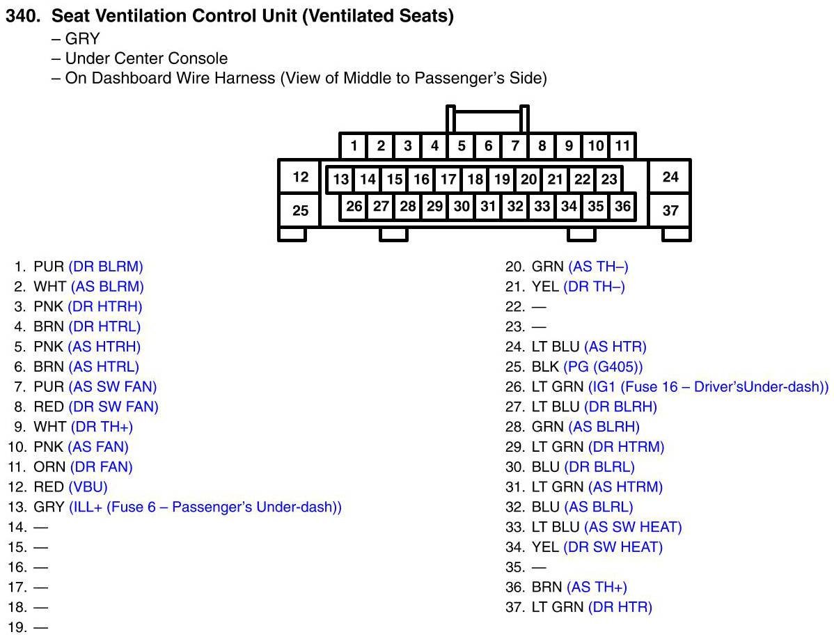 Seat Ventilation Control Unit (Ventilated Seats) Connector View