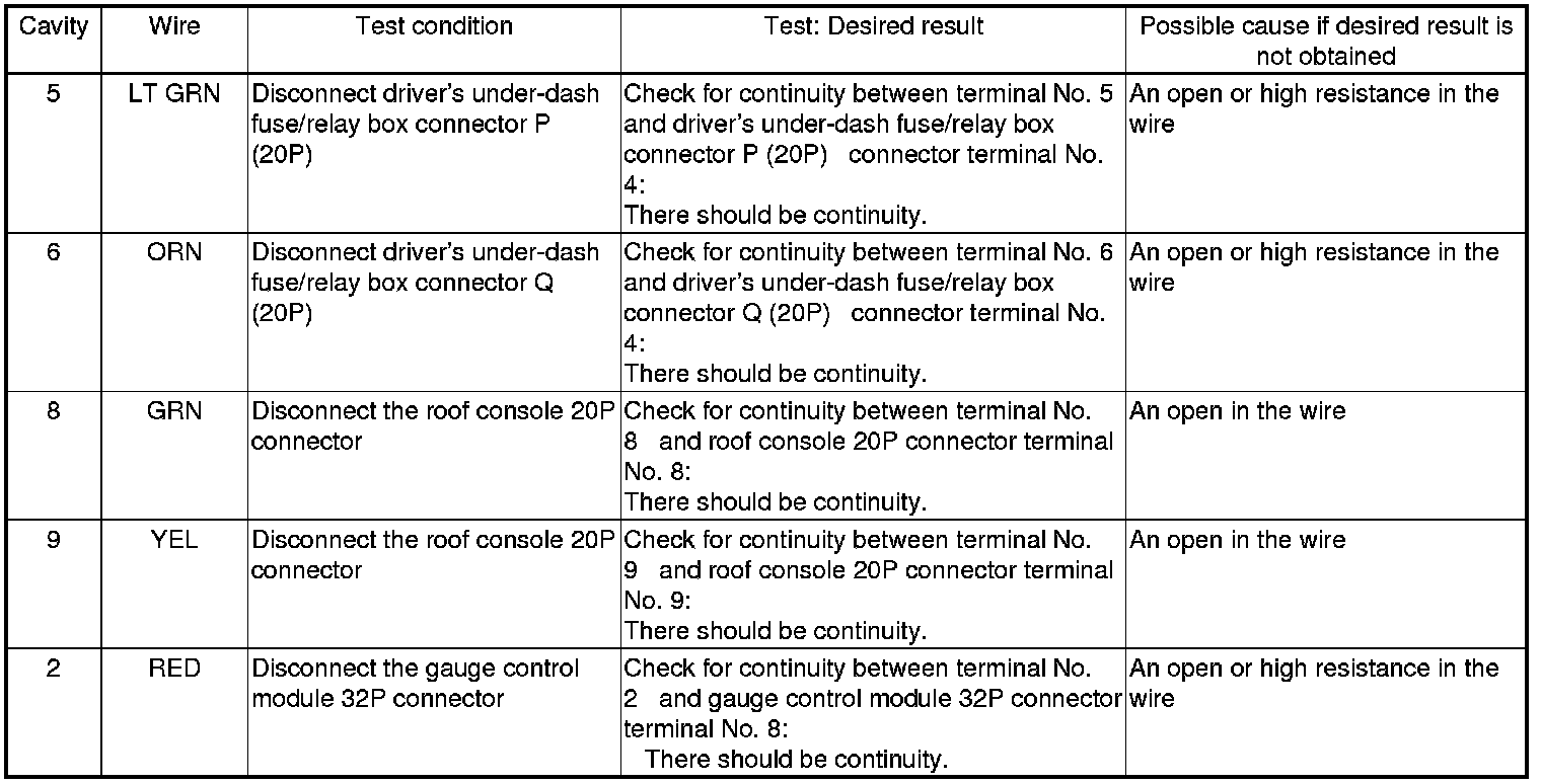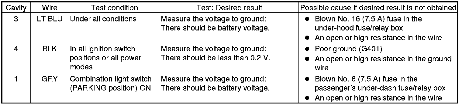 6. Reconnect the connector to the rear individual map light, and do the following input tests:
