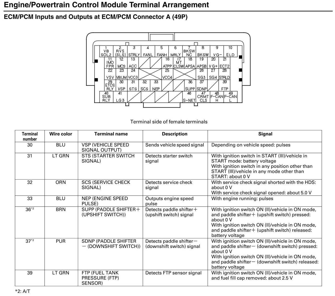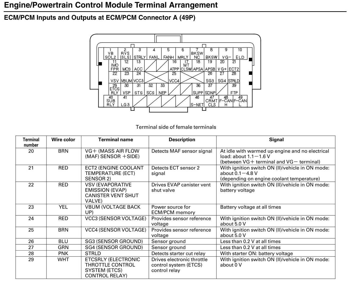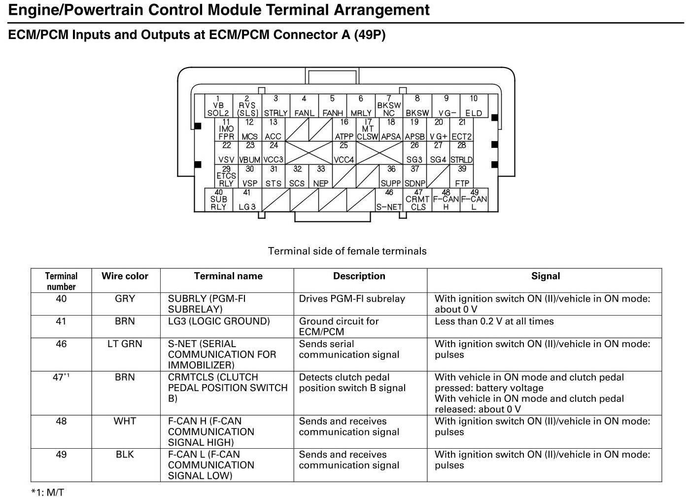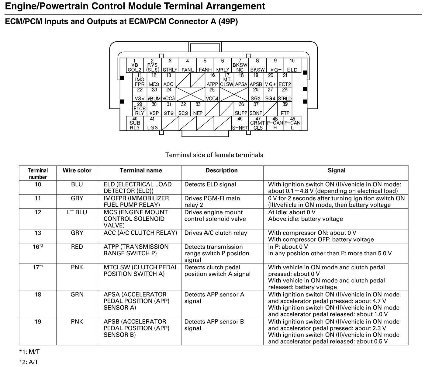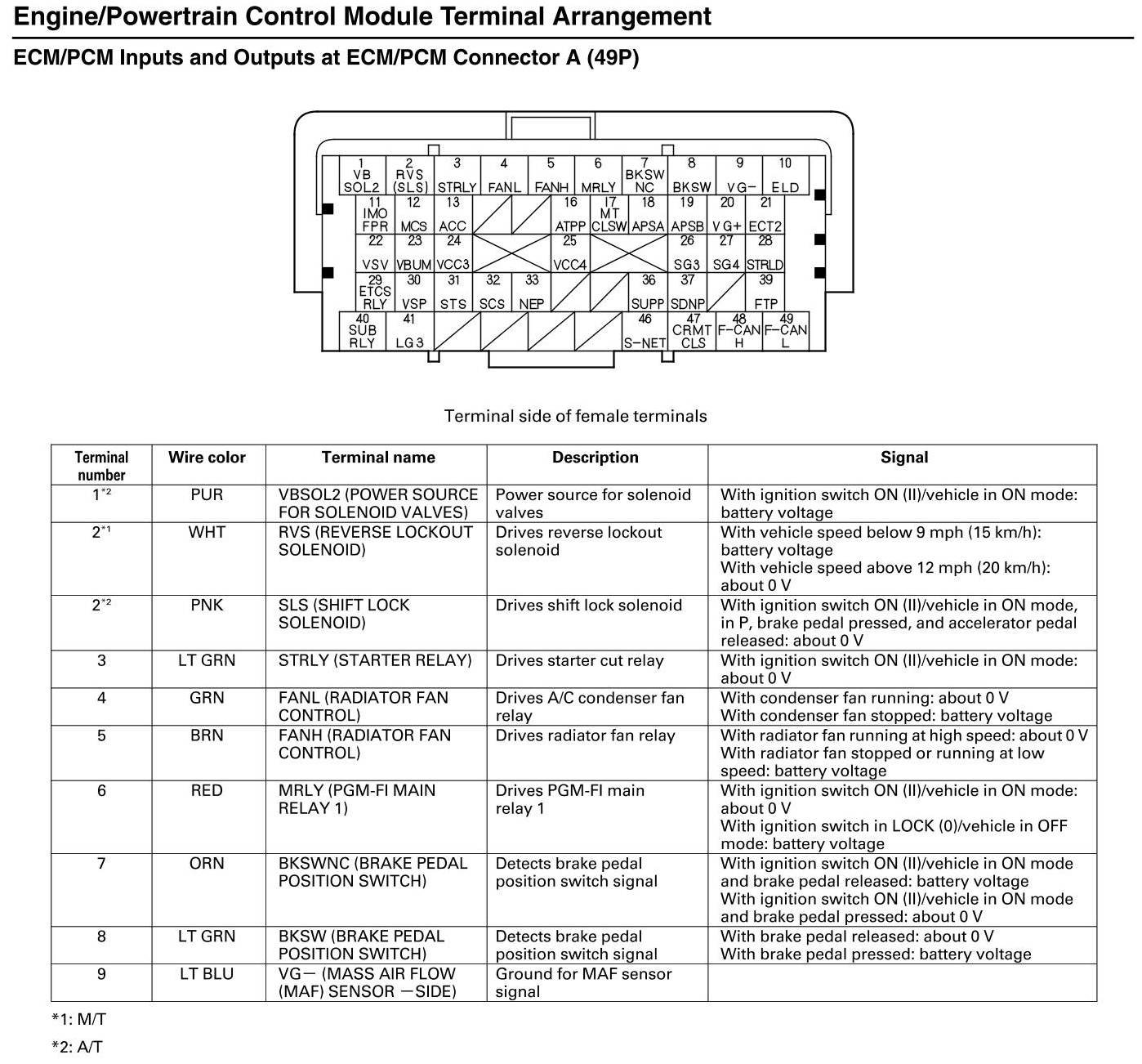 ECM/PCM Inputs and Outputs at Connector A