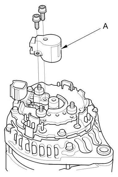 6. Remove the brush holder assembly (A).