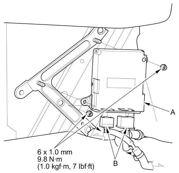 3. Disconnect the SH-AWD control unit connectors (B).