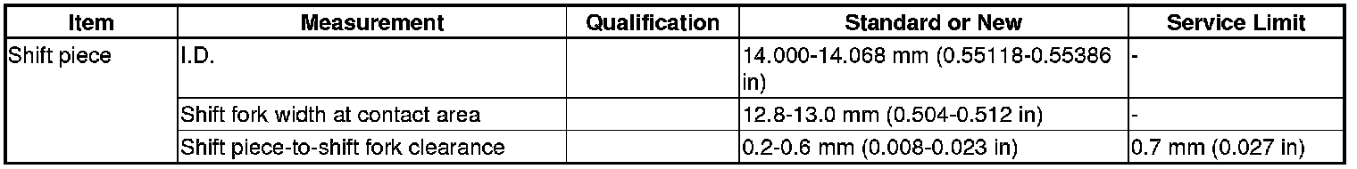 Shift Piece Specification(s) (M/T)