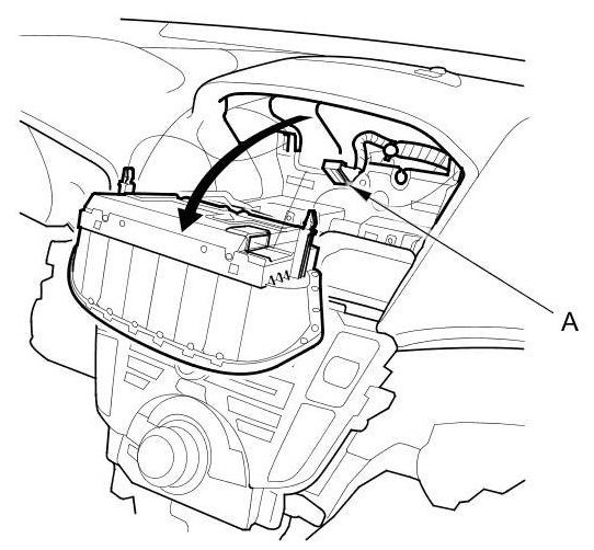 3. Pull out the navigation display unit. Then disconnect the connector (A) from the navigation display unit.