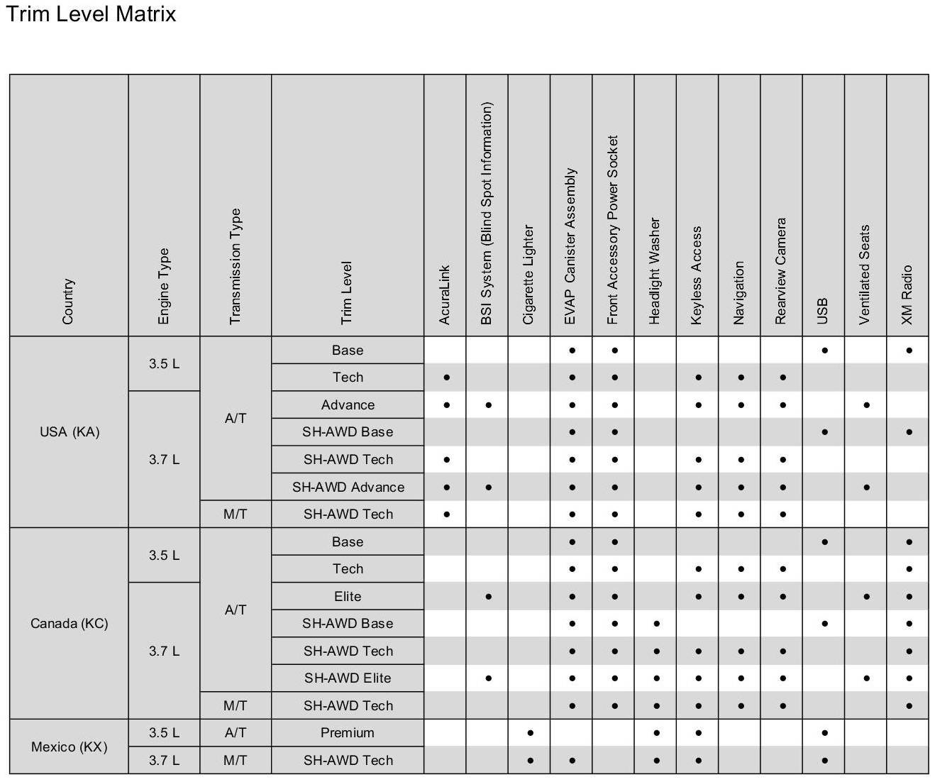 ETM Trim Level Matrix