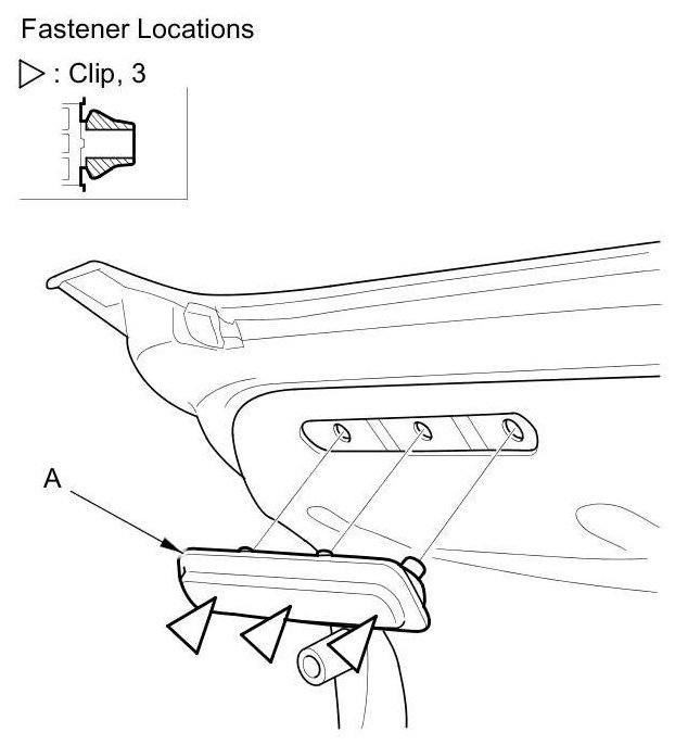 1. Remove the trunk lid cushion (A) by pulling it out to detach the clips.
