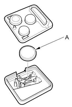 4. Replace the transmitter battery (A) with a new one (CR1616), and try to lock and unlock the doors with the transmitter by pressing the lock or unlock button five or six times.