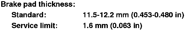 4. If any part of the brake pad thickness is less than the service limit, replace all of the brake pads as a set.