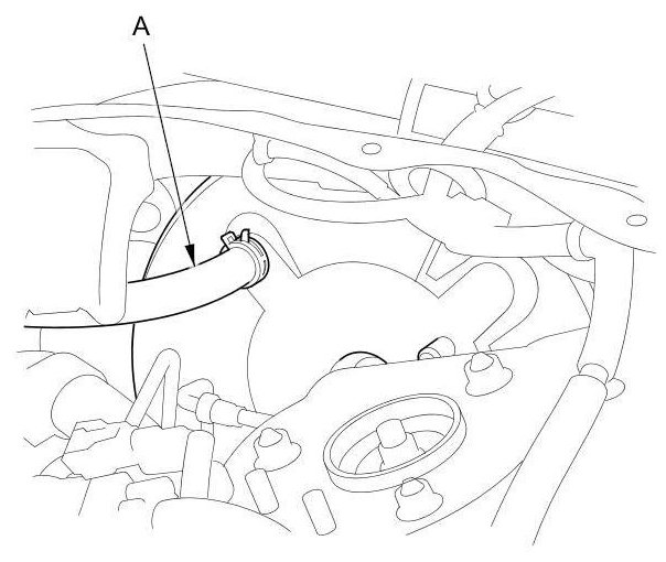 6. Disconnect the brake booster vacuum hose (A) from the brake booster.