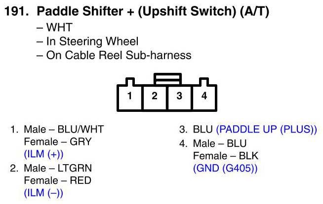 View 191 - Paddle Shifter + (Upshift Switch) (A/T) Connector View