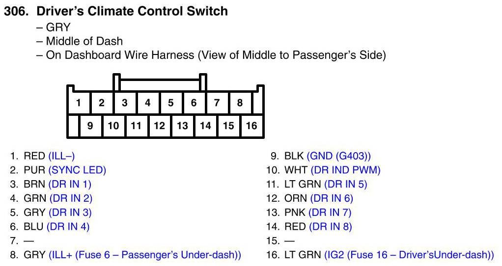 Driver's Climate Control Switch Connector View
