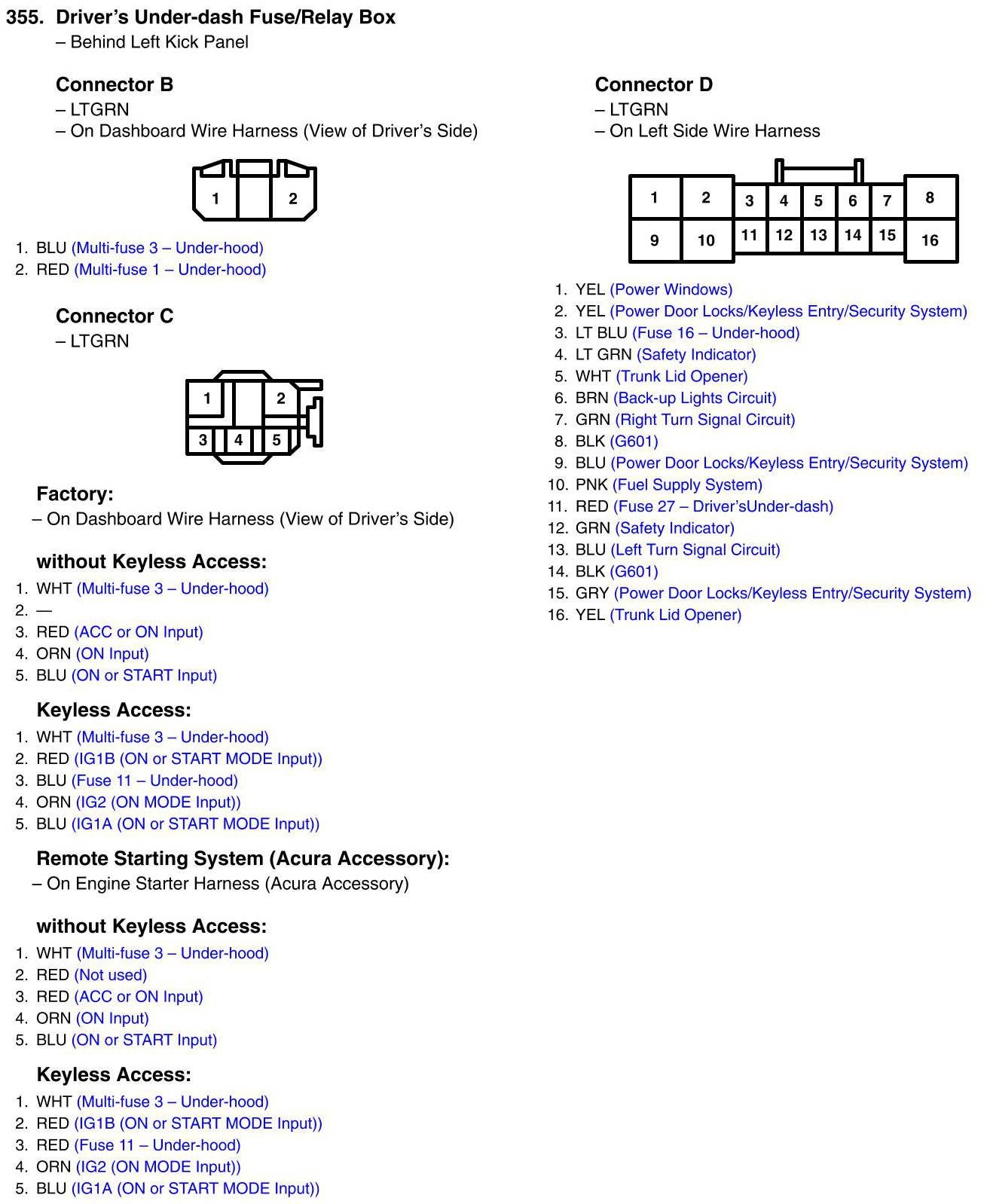 Driver's Under-dash Fuse/Relay Box Connector View
