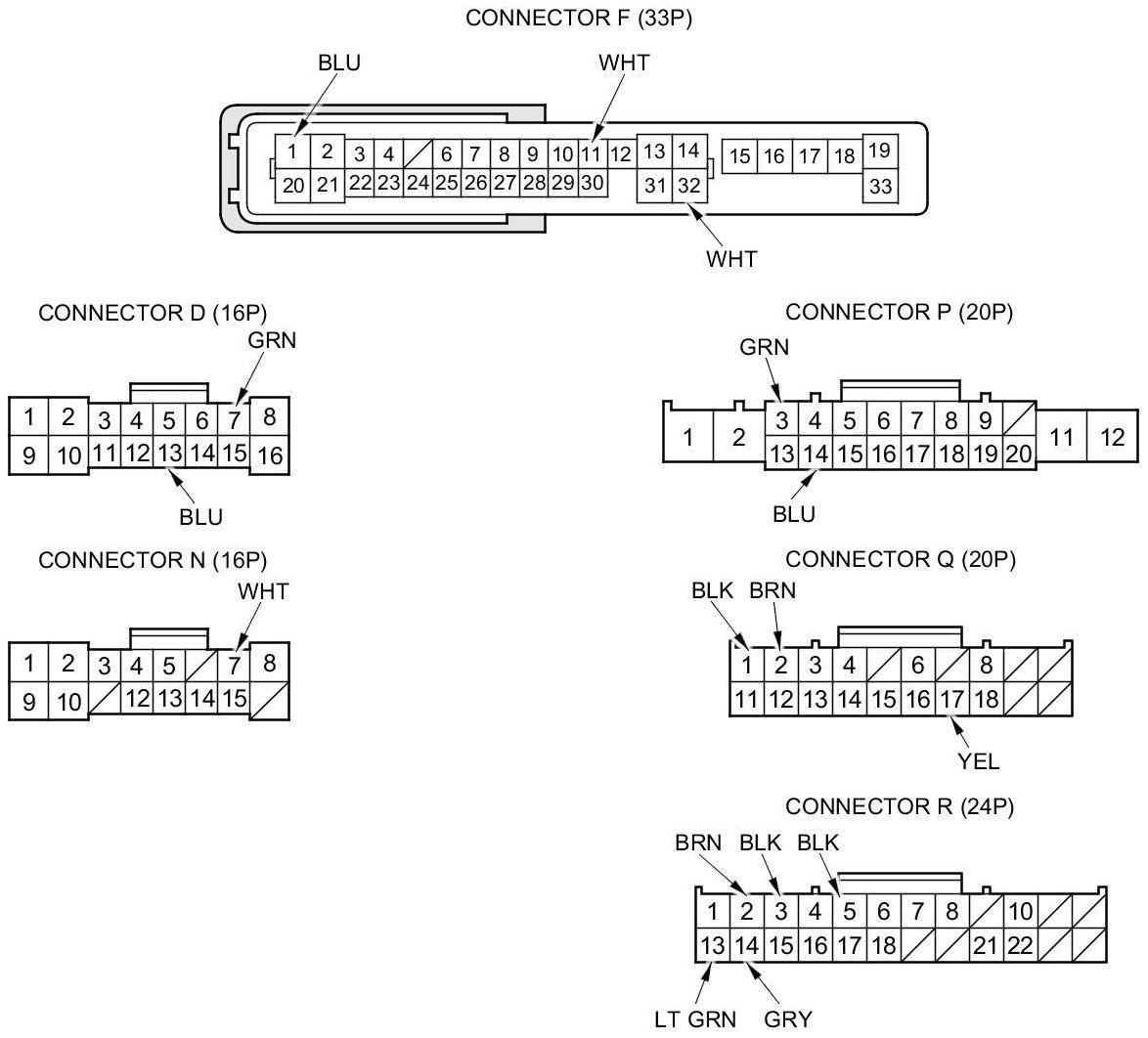 3. Disconnect driver's under-dash fuse/relay box connectors D, F, N, P, Q, and R.