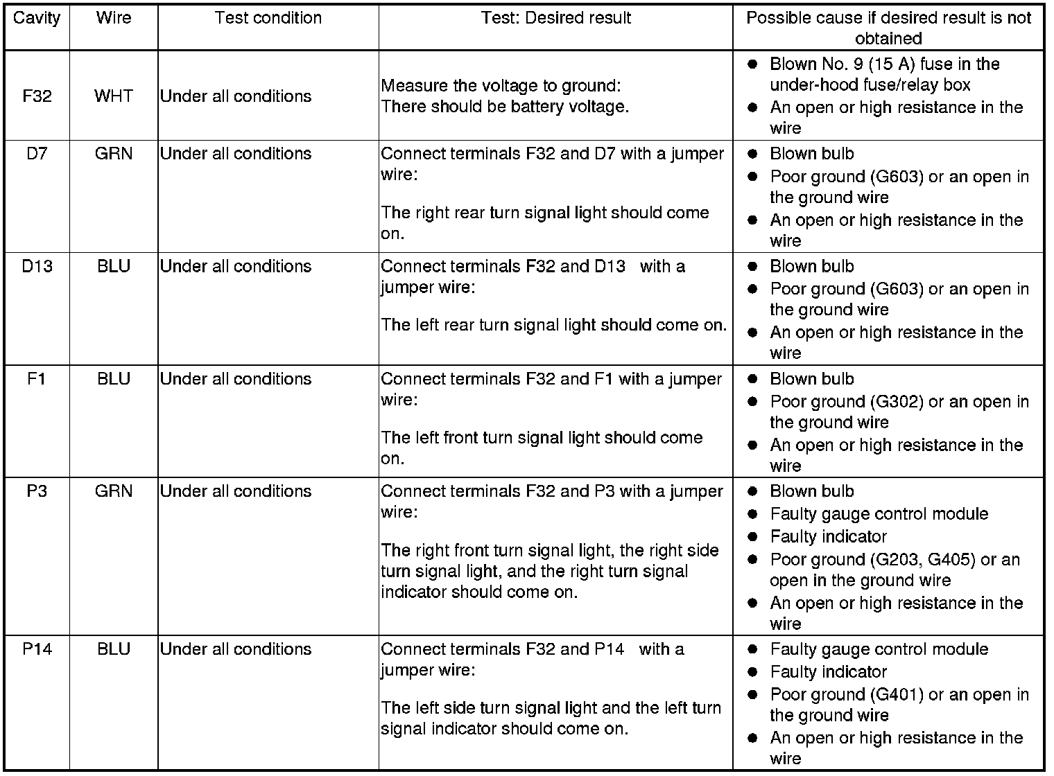 Turn Signal/Hazard Warning Lights (Drivers MICU) Input Test