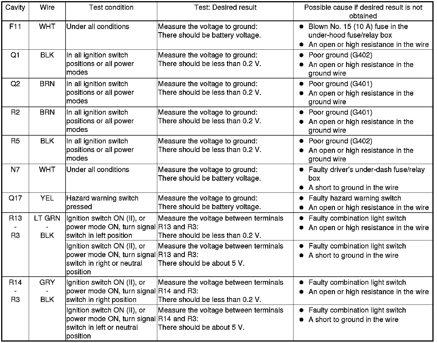 - Before testing, make sure the No. 12 (7.5 A) fuse in the driver's under-dash fuse/relay box is OK.