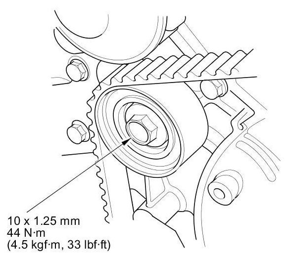 13. Tighten the idler pulley bolt.