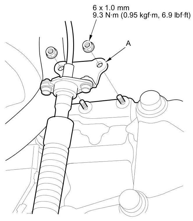 12. Install the shift cable bracket (A).