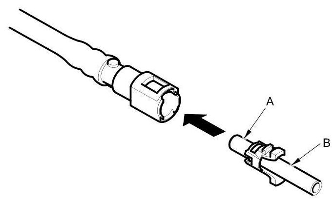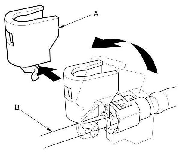 5. Check the contact area (A) of the line (B) for dirt or damage.