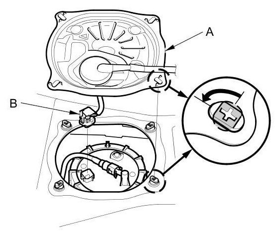 6. Disconnect the fuel tank unit 4P connector (B).
