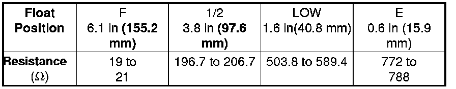 If you do not get the following readings, replace the fuel gauge sending unit Fuel Pump/Fuel Gauge Sending Unit Replacement.