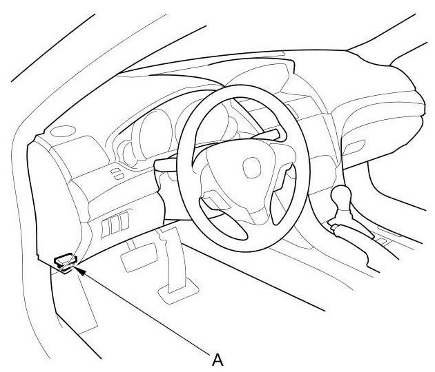 2. Connect the HDS to the data link connector (DLC) (A) located under the driver's side of the dashboard.