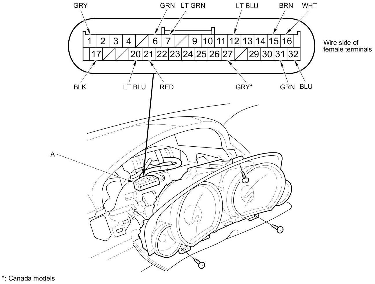 1. Remove the gauge control module Service and Repair, and disconnect the 32P connector (A) from it.