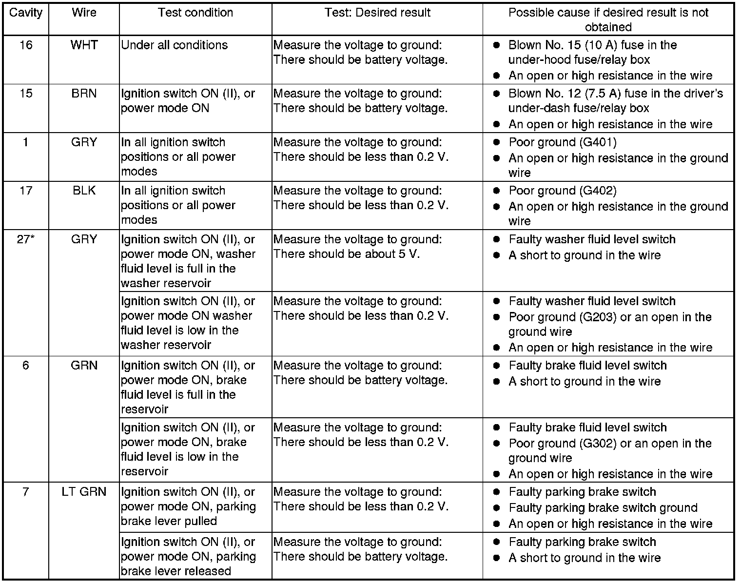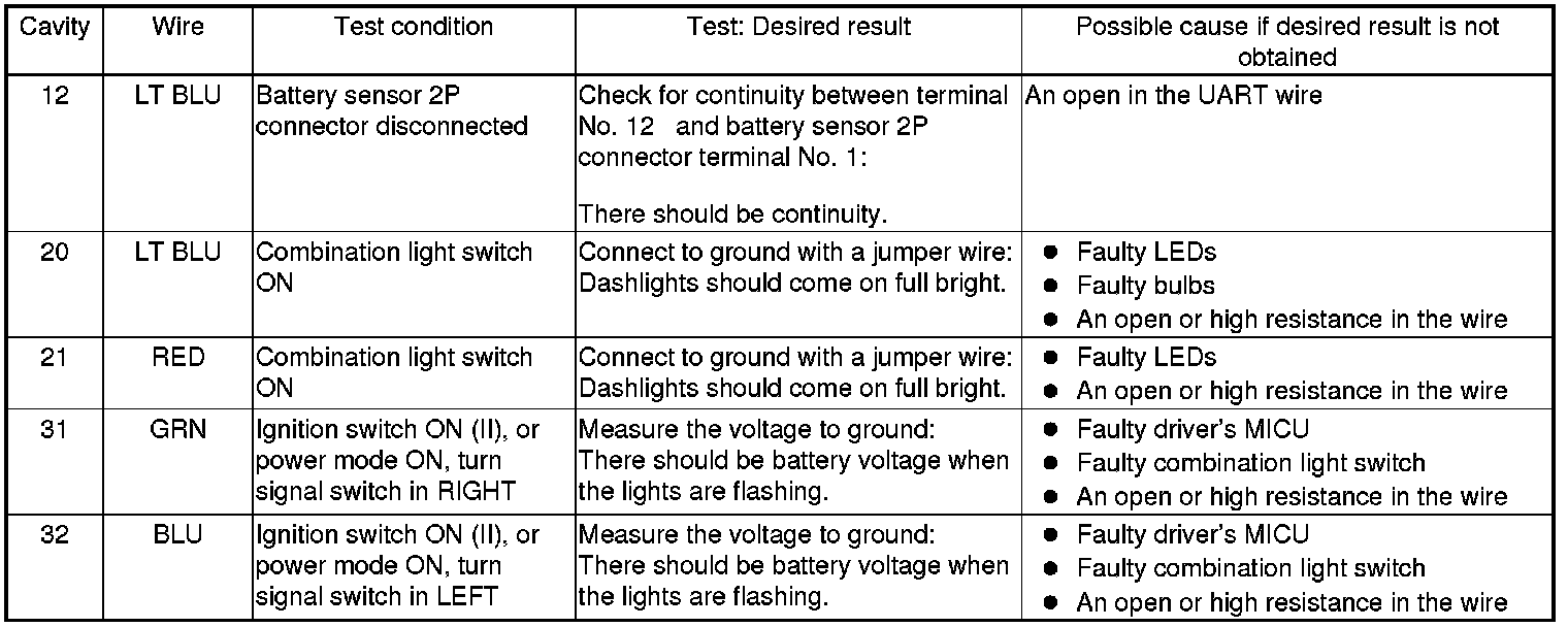 4. Reconnect the 32P connector to the gauge control module, and do the following input tests: