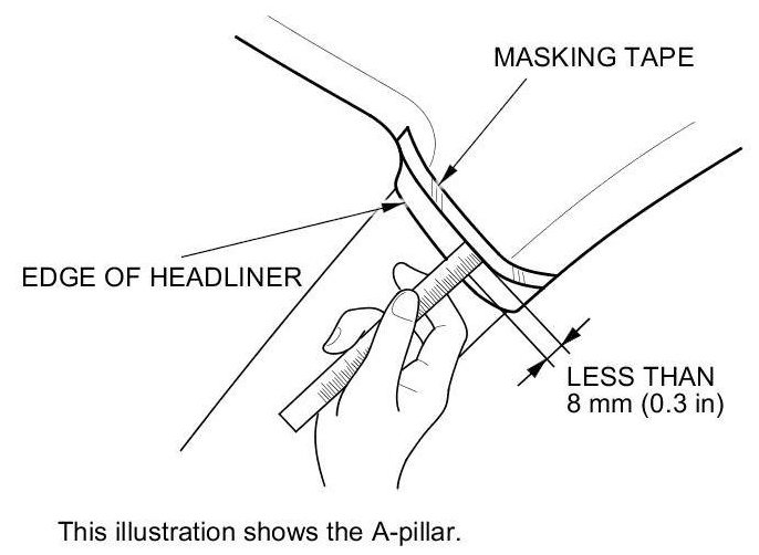 - If the overlap is less than 8 mm (0.3 in), remove the tape, and install the pillar trim.